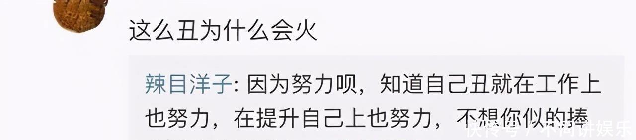 就像有东说念主在微博下给辣目洋子留言:这样丑为什么会火?天然辣目洋子回怼:因为辛劳呗,知说念我方丑就在责任上也辛劳,在进步我方上也辛劳。